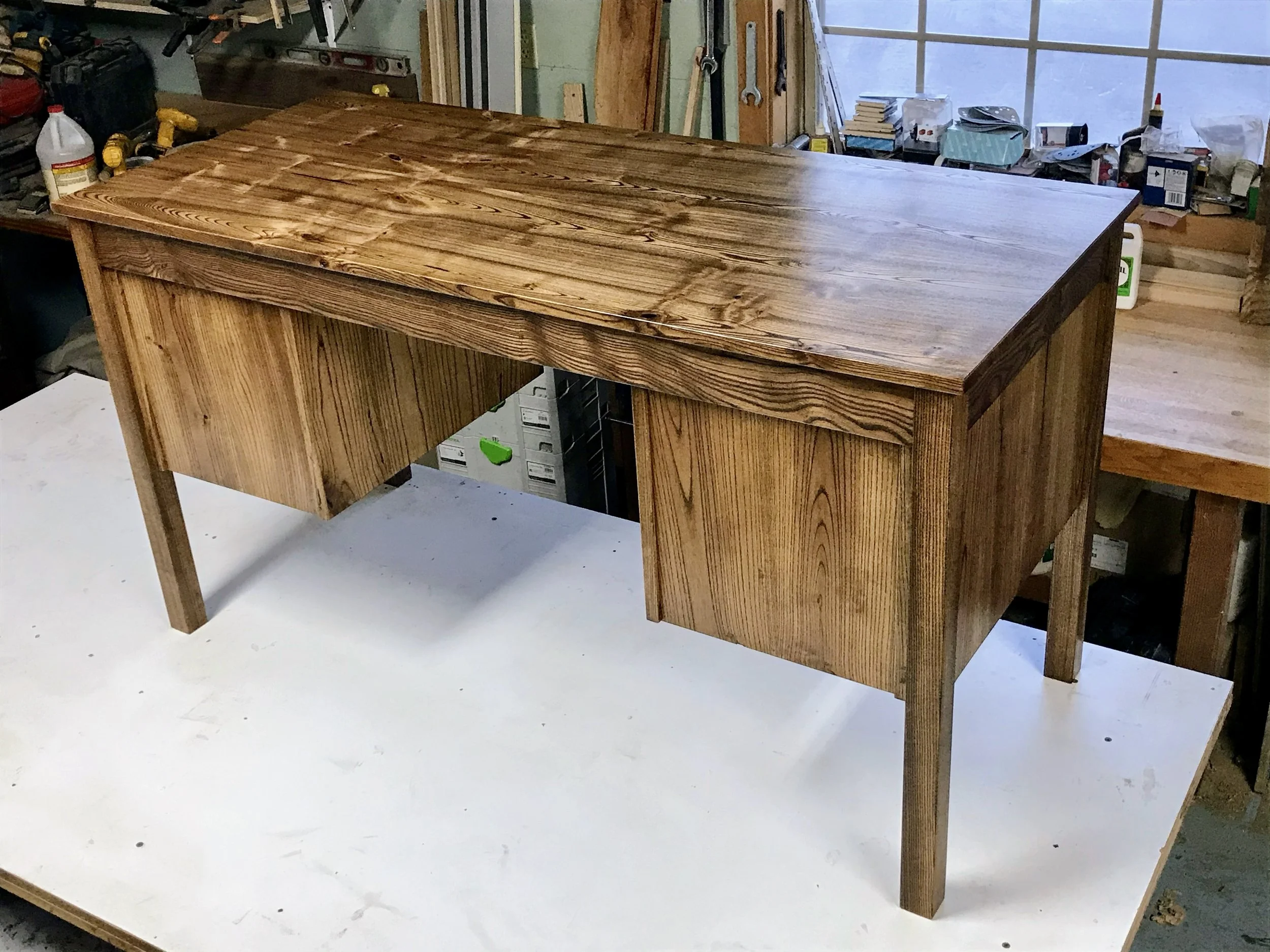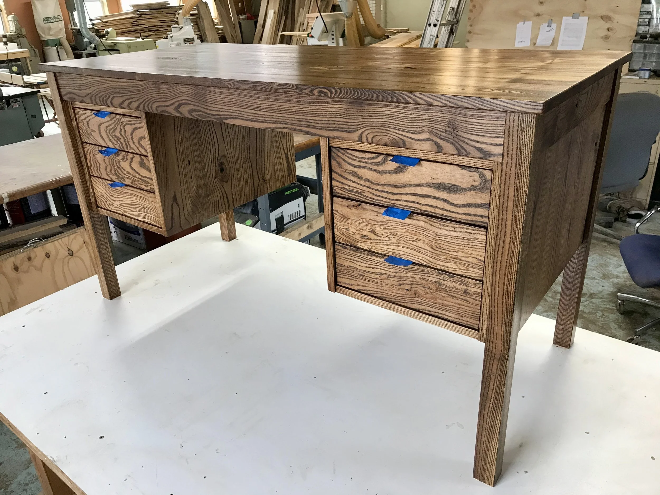 Rear view of the desk. Except for the maple drawer boxes, all other components are the solid reclaimed Ash our client's provided.